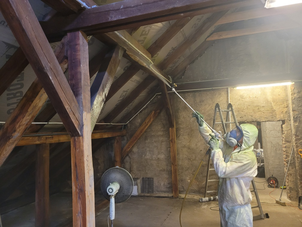 - Fumigacja gazowanie korników – Fumigacja nazywana też gazowaniem korników to jeden z najskuteczniejszych sposobów na pozbycie się tych uciążliwych szkodników. Do jego wykonania wykorzystuje się fosforowodór PH3, co wymaga wcześniejszego zabezpieczenia oczyszczanego obiektu. Można tego dokonać przy użyciu specjalnej folii, po czym przechodzi się do użycia wspomnianego fumigantu. Na tym etapie wstęp do domu mają tylko przeszkolone osoby przeprowadzające opisywany zabieg. Po gazowanie konieczne jest umiejętne odwietrzanie budynku i zdjęcie folii zabezpieczających obiekt. Tego rodzaju zabieg nie powoduje żadnych uszkodzeń i daje gwarancje pozbycia się korników.